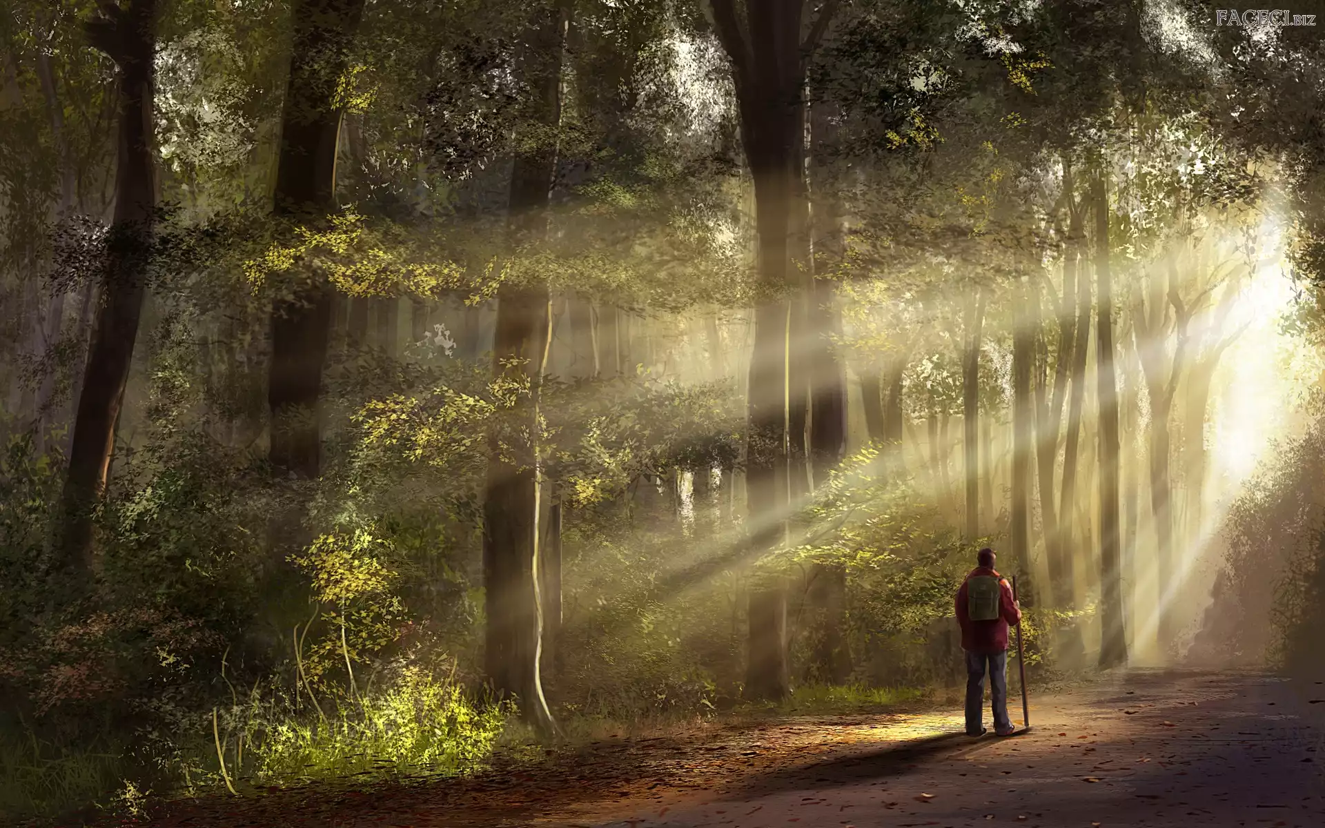 Wędrowiec, Las, Jesień, Słońca, Samotny, Promienie - faceci.biz